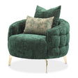 Lean back and lounge in luxurious style with the Celine Accent Chair. This contemporary chair features luxe upholstery in a rich green fabric that is sure to add some pizzazz to any room. Gleaming gold legs add a glamorous touch. Its modern glam design fits perfectly in your living room, bedroom, or any other space that needs a cozy and stylish update.