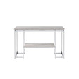 KD, Rectangular Sofa Table • Storage: Open Compartment (1 Wooden Fixed Shelf) • Wooden Top, Metal Sled Base •• CONSTRUCTION] Wooden Top/Shelf: Veneer (Paper)+ PB • Metal Apron Trim • Metal Sled Base: Chrome Finish, Metal Square Tube