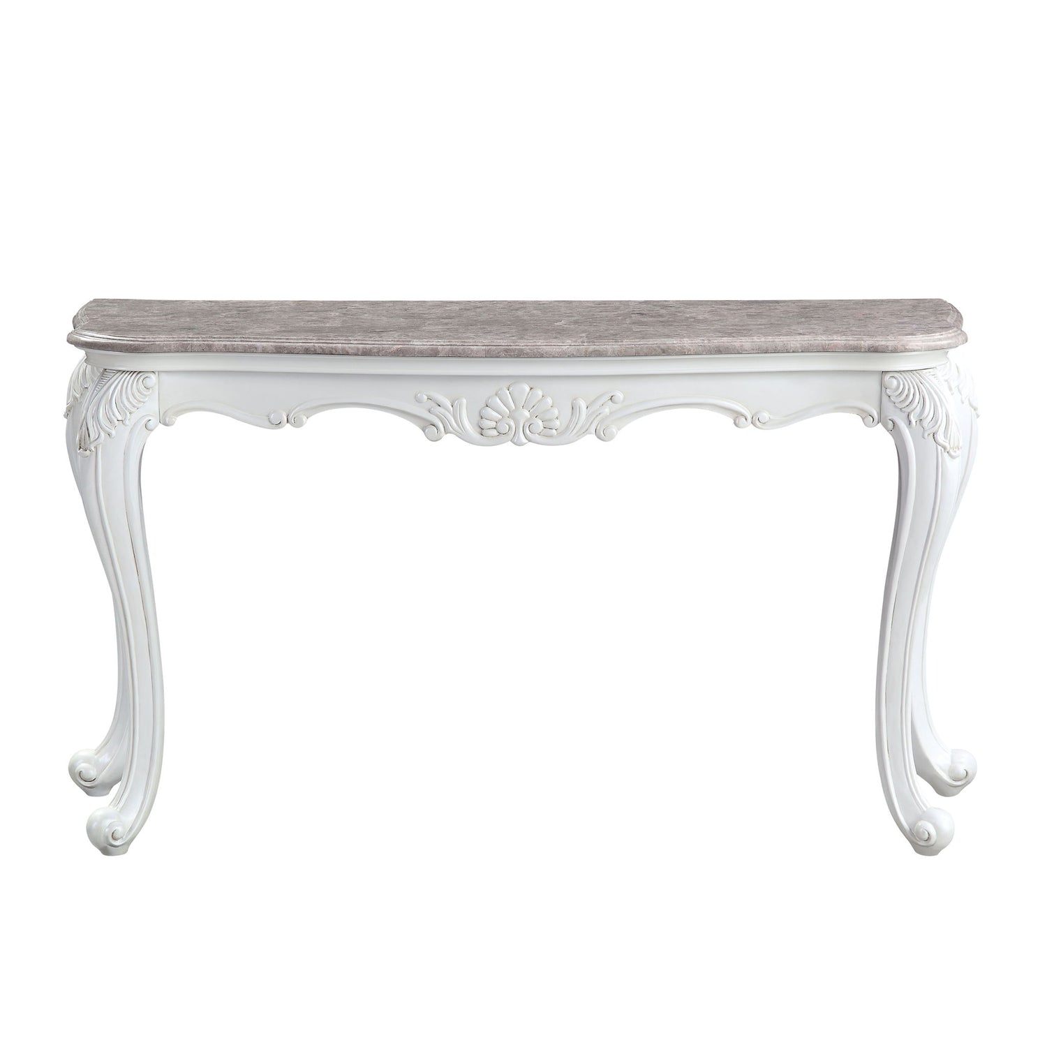 Showcase your refined decor style with the Ciddrenar coffee table. This rectangular coffee table exudes refined elegance and looks great with traditional or Old-World style decor. Traditional design elements with classic details such as intricately carved moldings on the apron and legs. The exquisite marble top is perfectly complemented with a classic white finish wooden base. Pair this coffee table with its matching sofa or end tables for a seamless look.