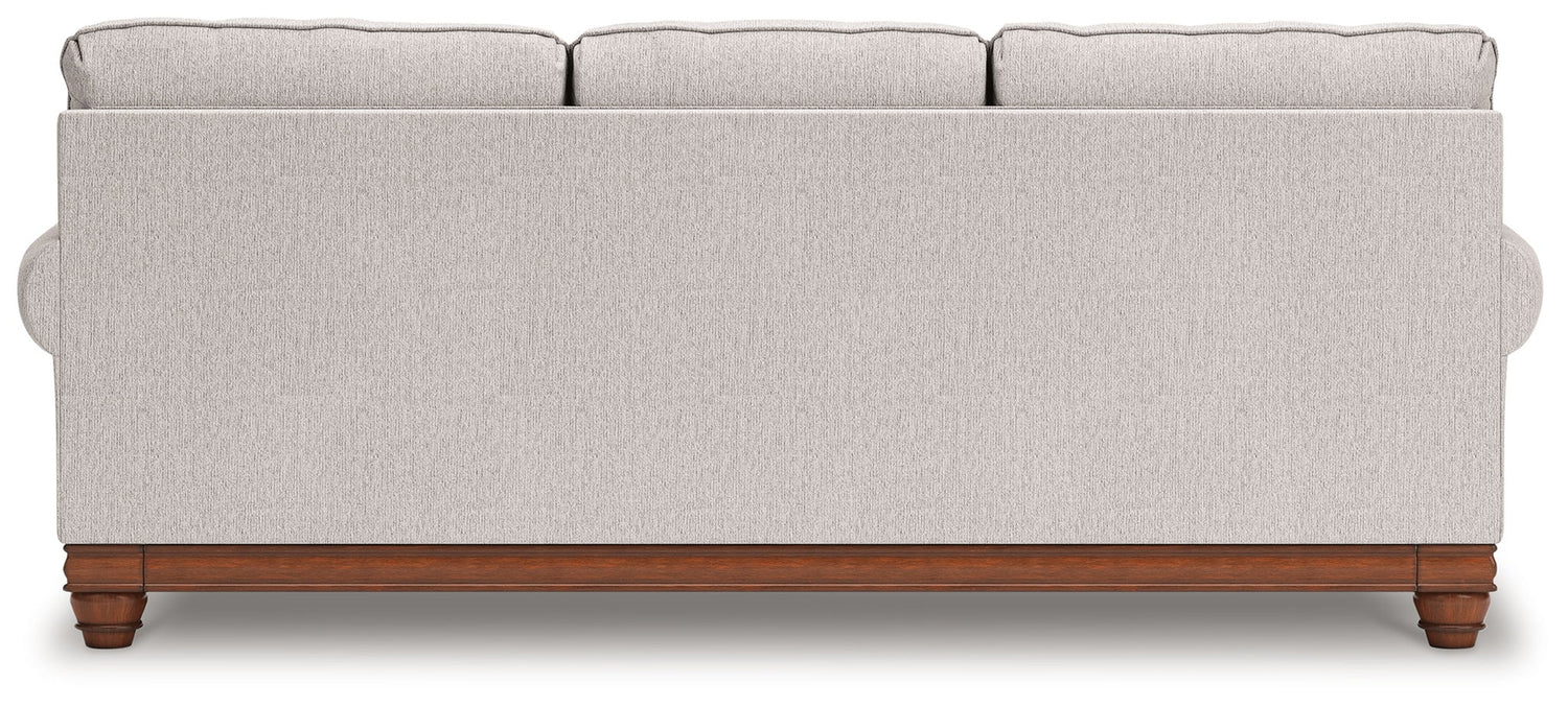 Fresh yet classic. That’s the beauty of this sofa. Dressy and also soft to the touch, its organic neutral-toned upholstery is sure to bring a transitional farmhouse aesthetic to your living space. Accent pillows in windowpane plaid and textured solid hues infuse a cozy and inviting farmhouse sensibility, while a full wraparound base and decorative turned legs complete the sofa's timeless look. It's the perfect place to unwind with your besties after a long day.