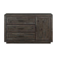 The Riverdale Black Server, with its rich distressed pine and subtle black finish, whispers tales of rustic elegance. Three deep drawers and a secretive door hint at memories yet to be made, while effortlessly cradling dining essentials. It's not merely storage but a dance of history and future, embodying the beauty and simplicity woven within deep narratives. In the ballet of casual dining, it stands as a poignant principal, quietly commanding attention.