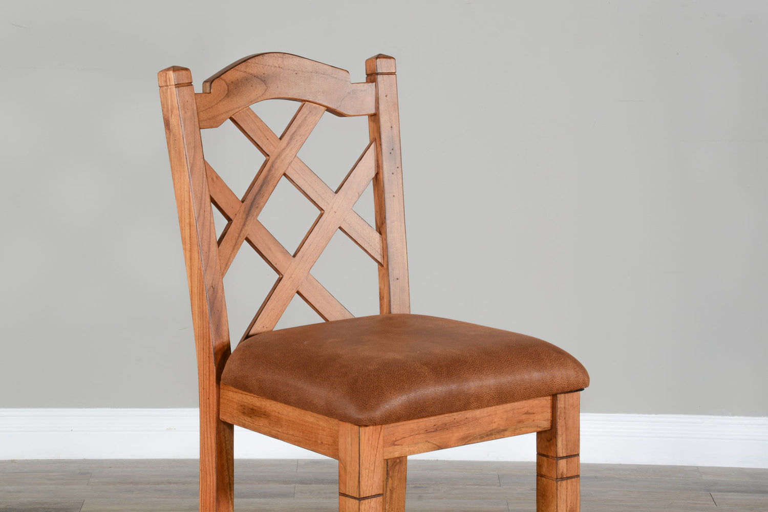 This Sedona double cross-back barstool with cushion seat was sturdily built to last, and finished in a beautiful Rustic Oak finish.