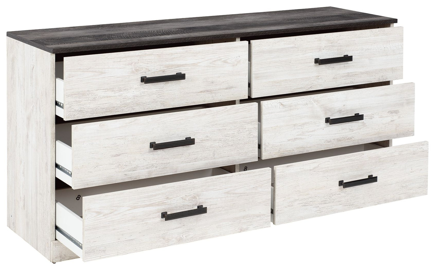 - 6 smooth-gliding drawers with vinyl-wrapped sides and back