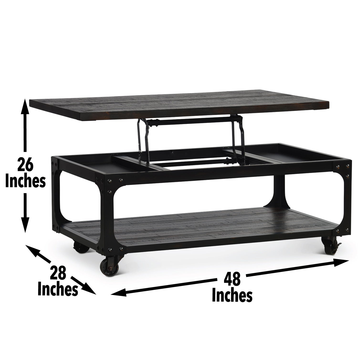 - Lift-top cocktail with casters and bottom shelf offers attractive storage and functionality