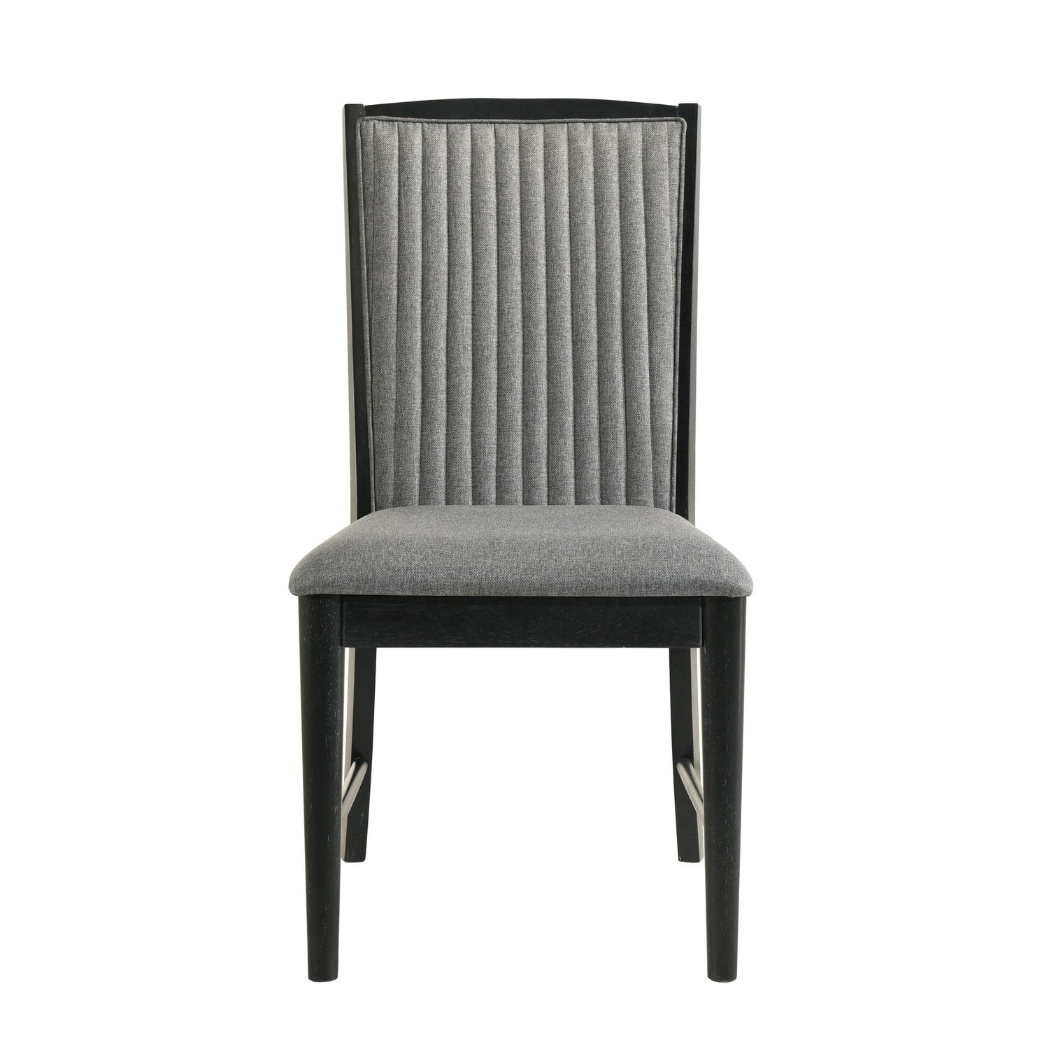 The Skyline Dining Side Chair in Onyx blends modern design with comfort, making it ideal for contemporary dining rooms. Built from solid Rubberwood, engineered woods, and Ash veneers, it’s durable and stylish. The Onyx Black finish with gray glazing enhances the wood grain. Textured gray ribbed polyester upholstery contrasts with the dark wood for a refined touch. Resilient foam cushions provide soft yet supportive seating. Sold in pairs, these chairs offer durability, comfort, and timeless appeal.