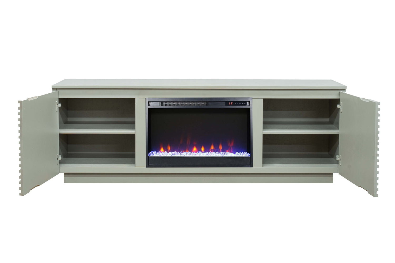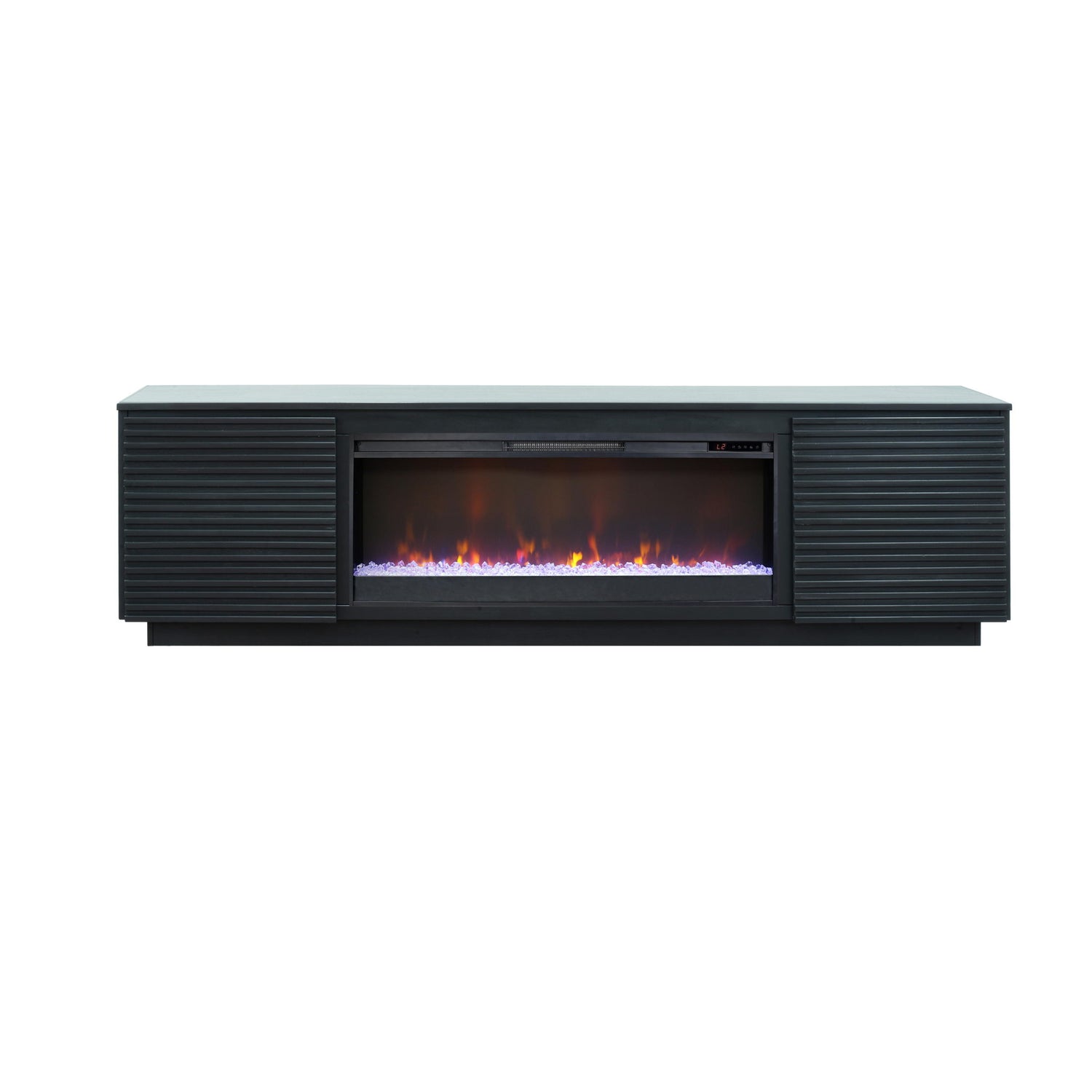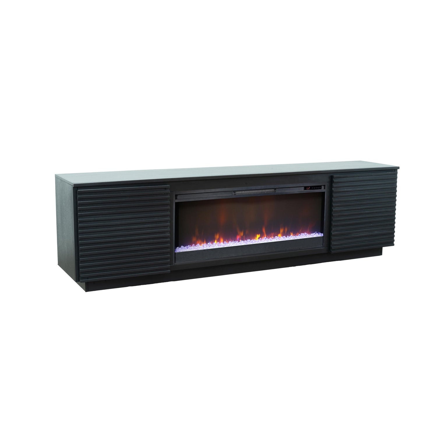 The Stardust Fireplace TV Stand features clean lines and understated design that will transform any room into a modern, sophisticated sanctuary. This unique piece will accommodate TVs and includes cable management openings and ample storage space for media and gaming consoles. The fireplace insert with clear crystals will keep you cozy while binge watching your favorite movie or TV series.