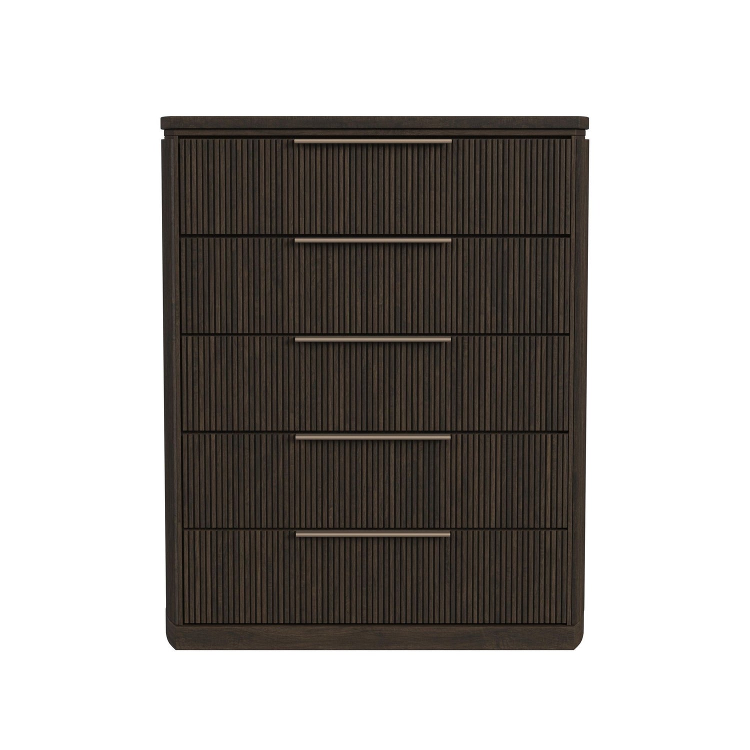 The Sylvie 5-Drawer Chest in Dark Brown is a refined addition to your bedroom. Outfitted with fine decorative fluting and sleek, understated silver drawer pulls, the elegance of this piece is only matched by its quality construction. Each drawer features skillful dovetailing and smoothly operating ball bearing glides, while the top drawer specifically is thoughtfully fitted with felt lining. For a piece that is as durable as it is elegant, the Sylvie 5-Drawer Chest in Dark Brown is sure to please.