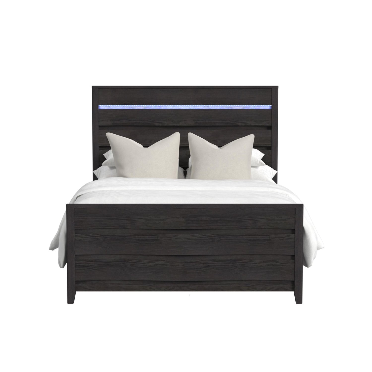 The Tobias Bed with LED is a sleek and modern addition to your home. Designed with gently sloping horizontal slats that create a uniquely rhythmic balance, this piece adds a sense of refinement to any space it occupies. Conveniently integrated LED lighting in the headboard adds modern flair, while slightly beveled legs provide a firm and reliable foundation. For a piece that is sleek and stylish, the Tobias Bed with LED delivers in quality and design.