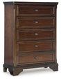 Trellington - Five Drawer Chest - Brown is backordered and will ship as soon as it is back in stock.