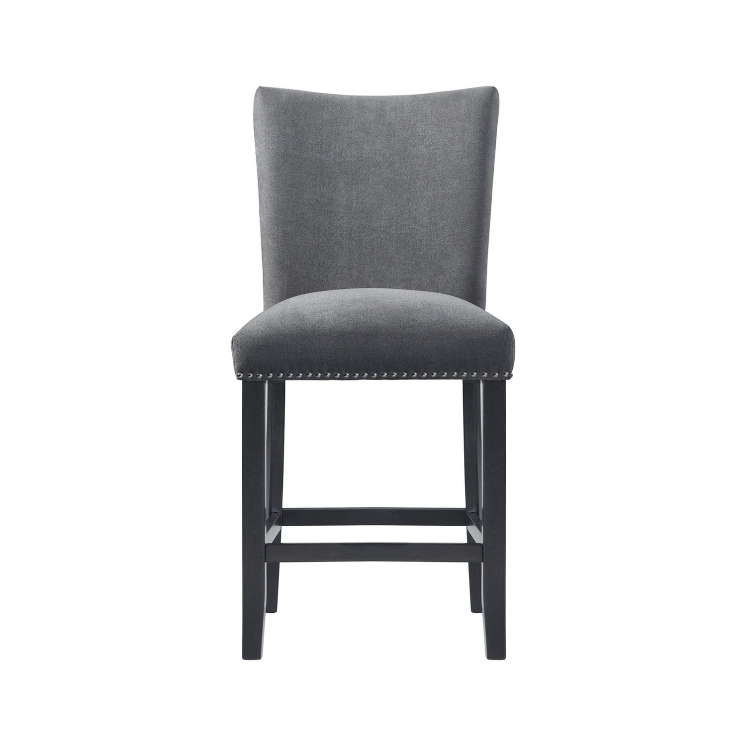 The Tuscany Counter Height Side Chair Set is going to look gorgeous in your dining room! This counter height set includes two side chairs, that are upholstered in a transitional, charcoal fabric. Chrome nail head trim outlines the edges of the chairs, instantly adding extra flair to this already stylish duo. The foam cushion seat and back will keep you plenty comfy through even the longest of dinners. The tall solid back adds a little extra drama, creating a look that youll never tire of! Add these chairs to your dining room today!