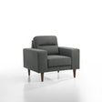 Introducing the Vale Arm Chair in Gray, a dependable blend of durability and comfort. Constructed with solid and manufactured wood frames reinforced with corner blocks, this accent chair ensures long-lasting reliability. Its cozy 100% polyester gray upholstery boasts a clean, contemporary look that's easy to maintain. High-density full foam seat cushions, wrapped in Dacron, offer a plush and supportive seating experience, while sinuous springs provide additional resilience. With extra-wide track arms, tight back cushions featuring a tailored center stitch, and stylish wood legs, this chair effortlessly adapts to various design schemes, making it a versatile addition to any space.