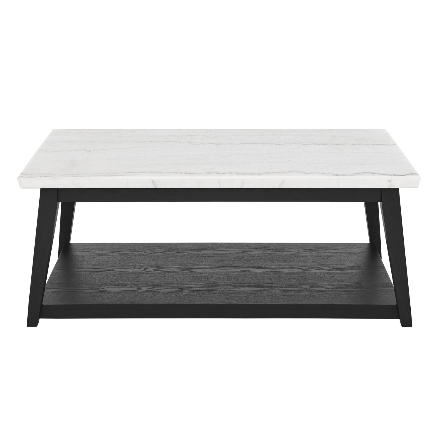 Elements of Mid-Century Modern and Scandinavian Contemporary combine in this casual yet elegant Cocktail Table. Clean lines and a natural black finish add a contrasting black and white look that blends beautifully with neutral interiors. A castered bottom means easy mobility to easily move the table away from reclining upholstery or out of the way for cleaning. The bottom shelf comes in handy for storage or display. Wrap it all up in one package for a great centerpiece to a lovely living room setup.