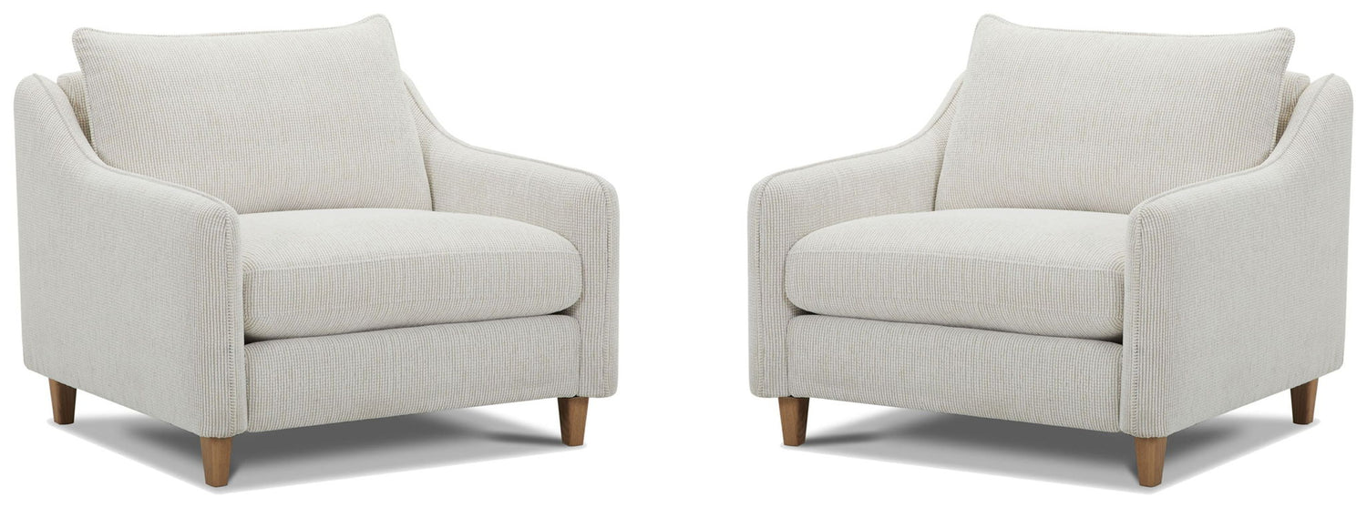 Whether you're curling up with a book or entertaining guests, our Chair and a Half provides the perfect combination of comfort and style. The wood feet in a natural finish add a distinctive touch and lend a modern vibe to the design. Exquisitely tailored and upholstered in a durable, 100-percent polyester fabric with rich texture and velvety softness, this chair provides a cozy and luxurious seating experience. The seat cushions are padded with high-density Dacron and topped with sterilized down and feathers for maximum plushness, while the seating features no-sag springs and high-density webbing for long-lasting support. The wood frames feature reinforced corner blocks for lasting strength and stability, and select woods are kiln-dried to minimize warping and splitting while ensuring longevity. The seat cushions are encased in cotton, down-proof channeled ticking to help them keep their shape and prevent feather migration.