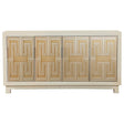 Elevate your space with bold Art Deco flair using this striking accent cabinet. Featuring a Greek key pattern across its four doors, this piece blends timeless design with modern charm. A tri-tone palette of white, gold, and silver adds sophistication, while three interior shelves provide practical storage. Crafted from wood and MDF, this cabinet is perfect for entryways, living rooms, or dining areas.