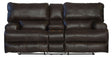 Wembley - Italian Leather Match Lay Flat Reclining Console Loveseat - Steel