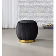 Assembled, Backless Round Ottoman (NO Storage) • Fully Padded Seat: Velvet • Armless • Wooden Inner Frame • Metal Round Base.